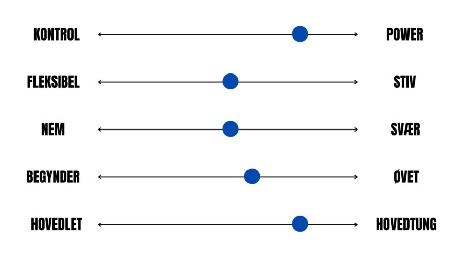 Begynder vs. Øvet: Fortæller hvilken spillertype ketcheren henvender sig til. Desto sværere ketcheren er at spille med, desto længere op vil prikken være imod øvet.