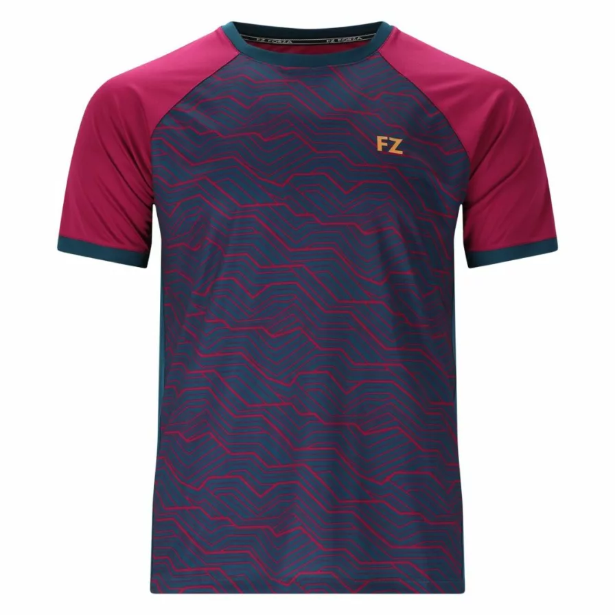 Forza PR2508 er den ideelle t-shirt til spilleren, der vil kombinere stil, bevægelsesfrihed og funktionalitet. Den er fremstillet i 100% genanvendt polyester, som gør den både let, åndbar og miljøvenlig. Den regular fit pasform giver en naturlig komfort, mens den energiske Raspberry Radiance farve og moderne print tilføjer et sporty og eksklusivt udtryk – perfekt til kamp og træning.