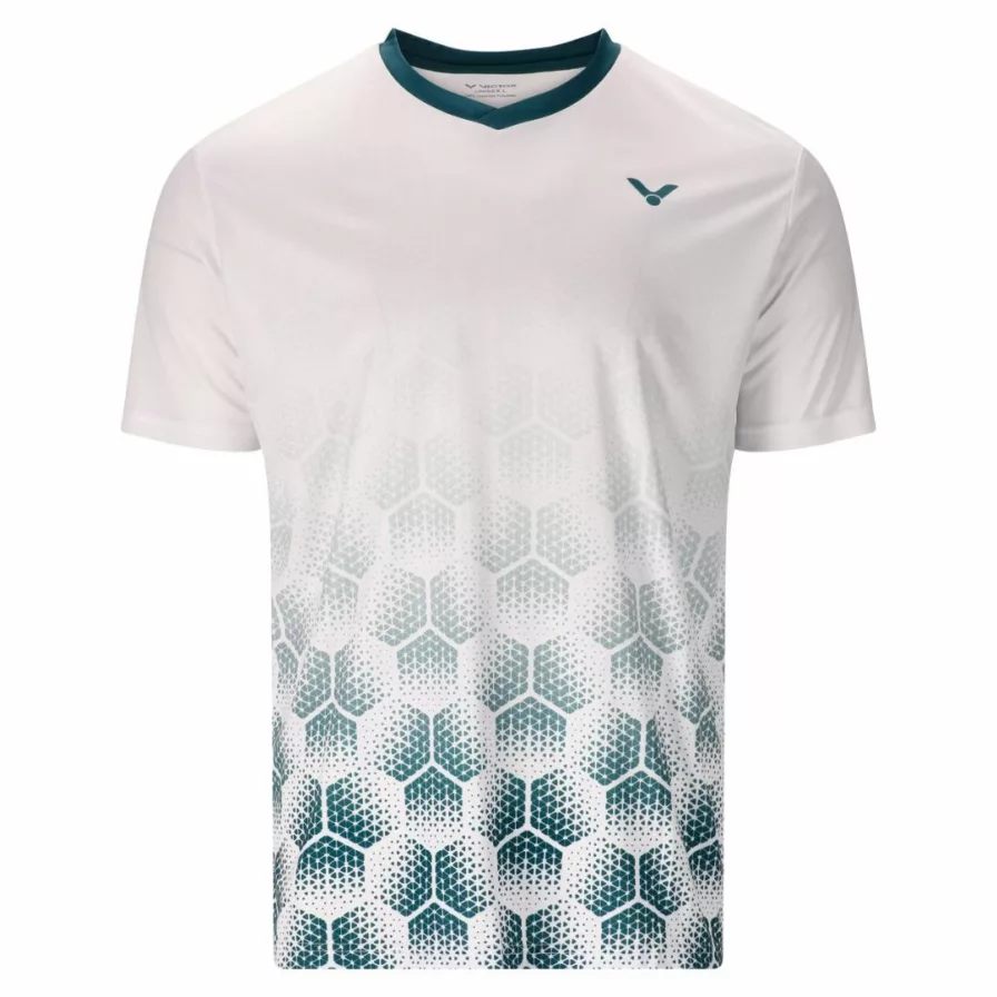 Denne Victor t-shirt til juniorer er skabt til spillere, der vil præstere med både stil og bevægelsesfrihed. Det lette polyesterstof er blødt og åndbart, så du kan holde fokus i hele kampen. Den unisex pasform giver optimal komfort, mens det moderne honeycomb-print i grønne nuancer tilfører et friskt og energisk udtryk. En perfekt trøje til træning og kamp for ambitiøse juniorspillere, der vil føle sig lette og klar på banen.